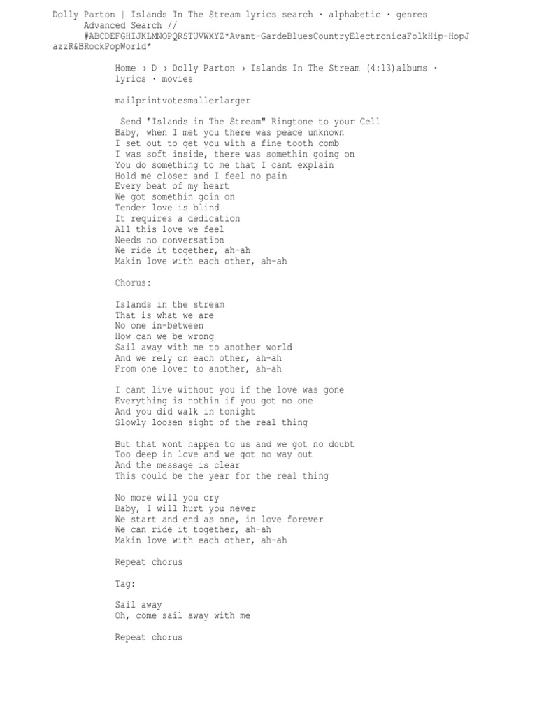Bee Gees Islands In The Stream Youtube from i.ytimg.com I can't live without you if the love was gone everything is nothin' if you got no one and you just walk in the night slowly losin' sight of the real thing. We can sail away while we still have time there's a million places that i. Sail away with me, to another world and we rely on each other, uh huh from one lover to another, uh huh. But these are still fun. Islands in the stream that is what we are no one in between how can we be wrong sail away with me to another world. And we rely on each other, ah ah. Oh, let me take you there to another land don't expect the world to understand (sail away). Roque belino and miss ingrid payaket has.